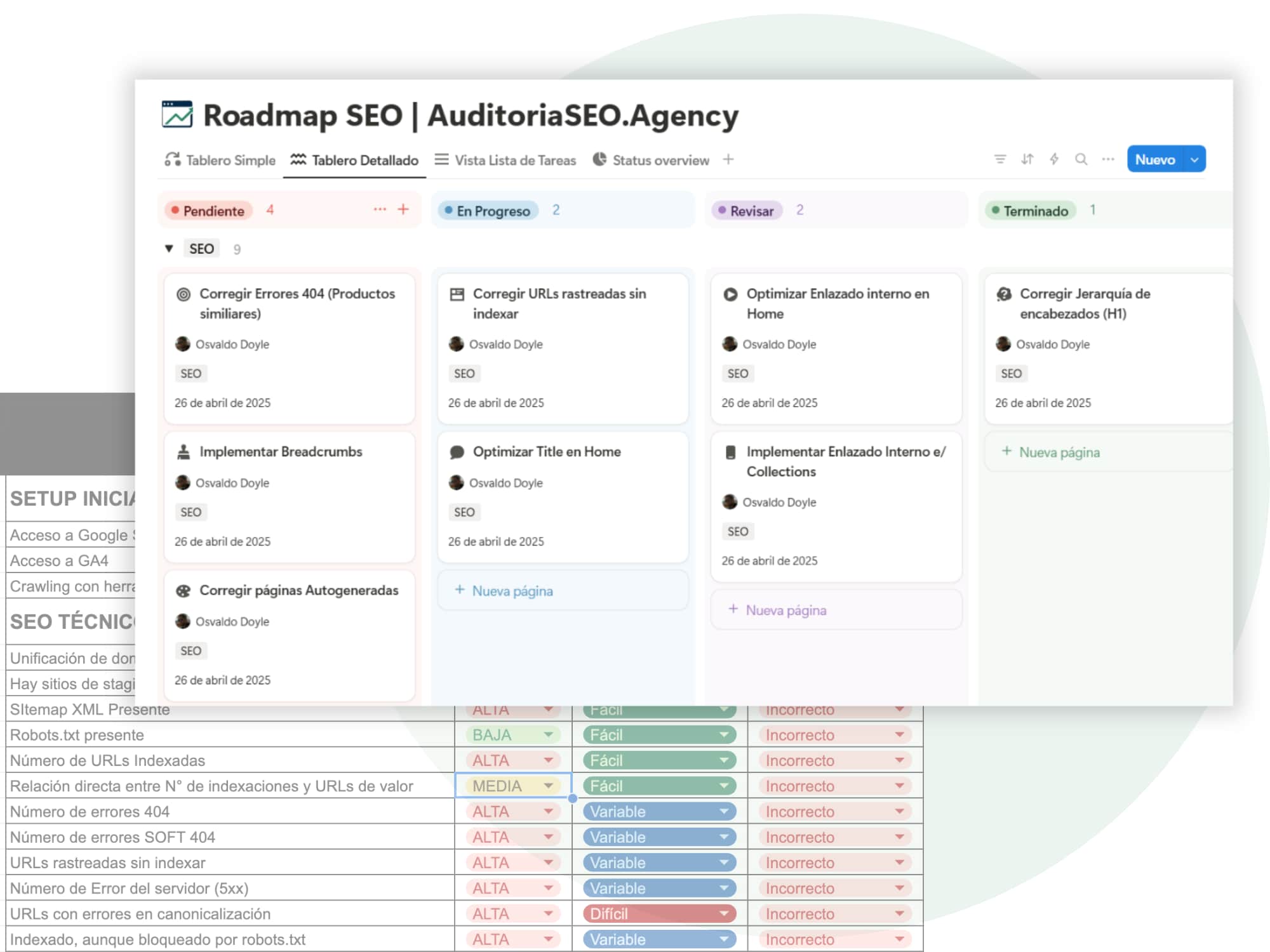 Te entregamos un roadmap SEO accionable, con todas las tareas organizadas según impacto y esfuerzo. Para que sepas qué implementar primero y qué puede esperar.