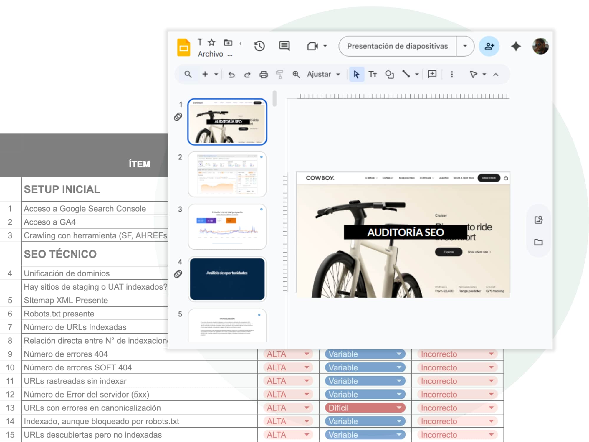Nuestra auditoría comprende más de 110 puntos relacionados a cómo Google rastrea e indexa tu sitio web buscando errores y oportunidades de mejora.